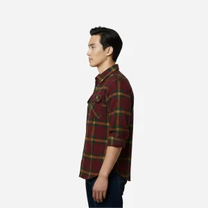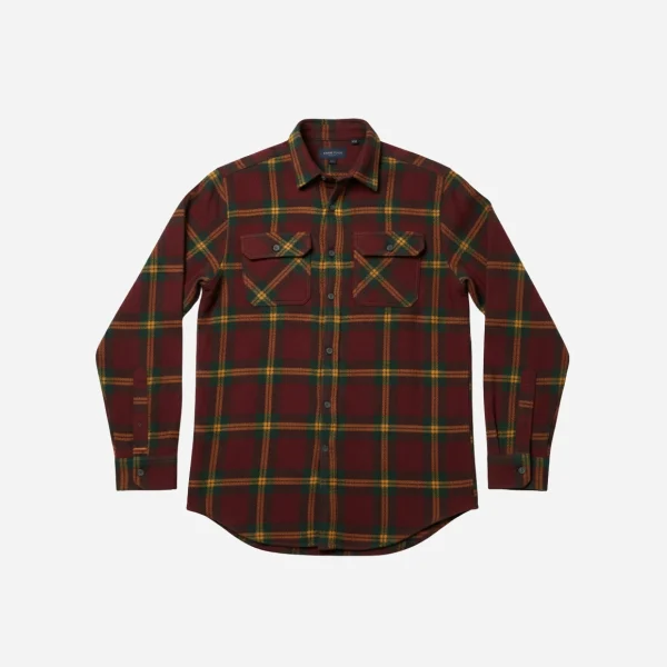 Distinctive Color Palette: Features a sophisticated plaid combining deep maroon, dark forest green, and striking gold/mustard yellow lines.