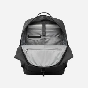 The Urban Commuter is built to handle the unexpected. Its sleek, black/dark gray exterior is made from durable, tightly woven, weatherproof fabric that protects your valuables from rain and splashes. The signature roll-top design expands when you need extra room and cinches down securely with a heavy-duty clip, ensuring a compact profile when traveling light.